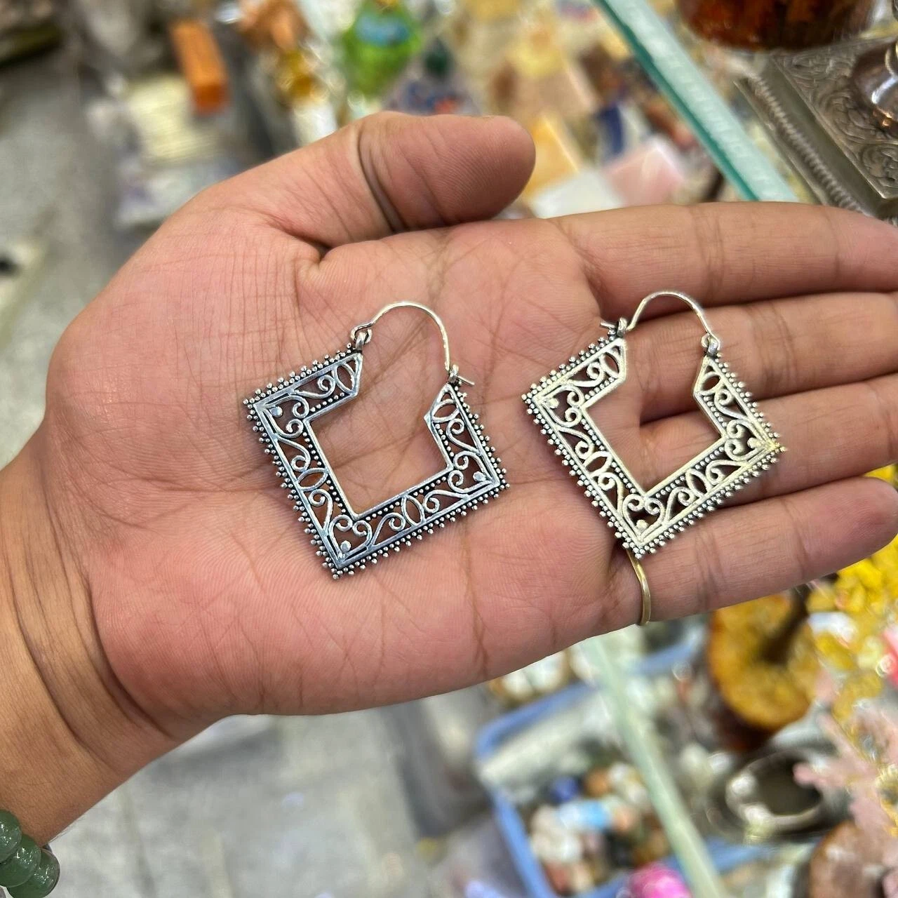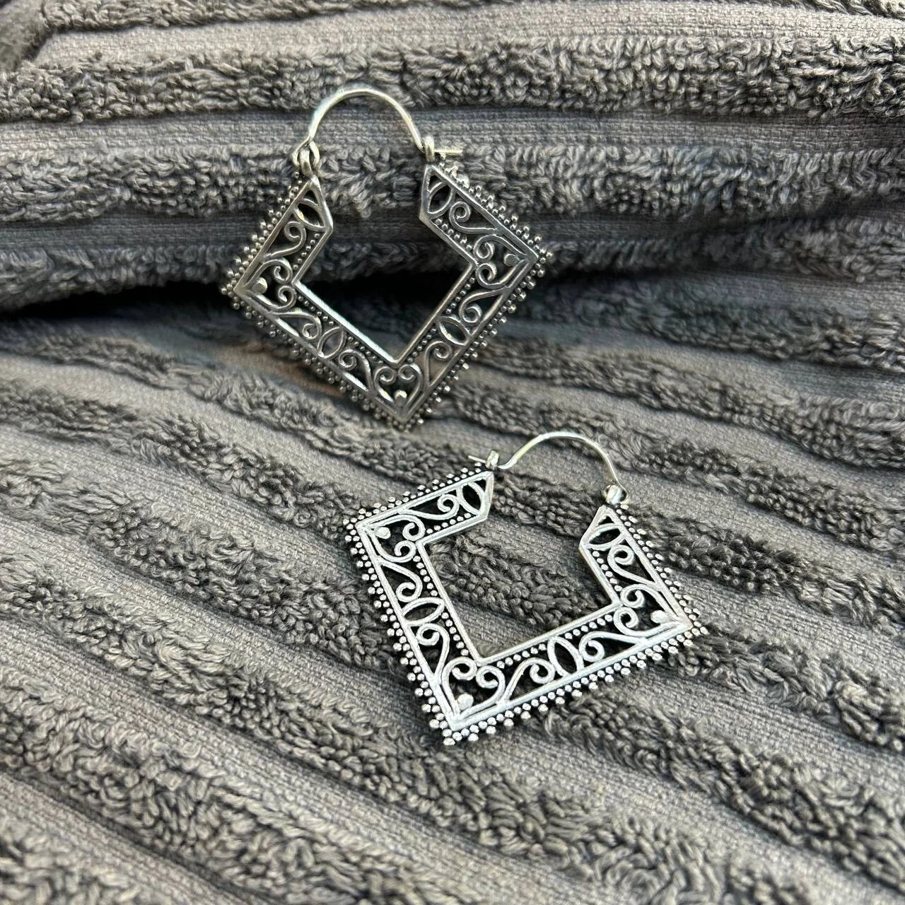 Be the first to review “Brass Silver Plated Designer Boho Afghani Brass Hoops Tribal Mandala Filigree Earrings”
